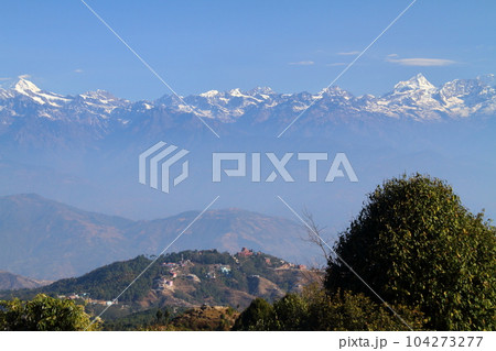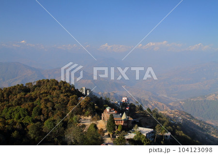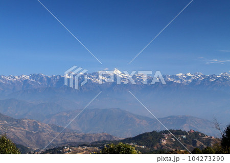 南アジアのネパール ヒマラヤの展望台として知られるカトマンドゥ郊外の村ナガルコットからの景色