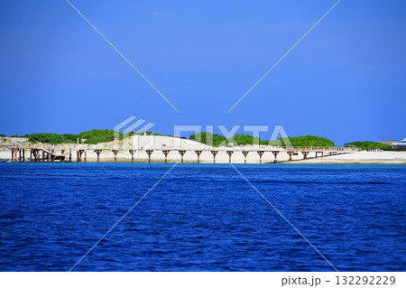 青い海の高速船へ続く桟橋 10月沖縄本島398ナガンヌ島桟橋・ケラマ諸島