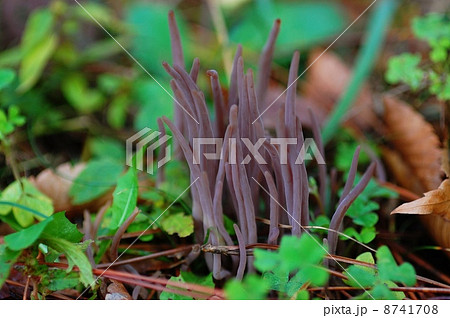 きのこワールド シロソウメンタケ科ムラサキナギナタタケ群生