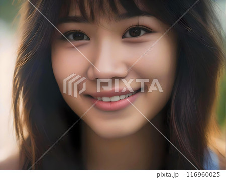 笑顔のポートレート:肌の質感までリアルな20代半ばの日本人女性