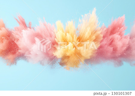 Vibrant Colorful Powder Explosion on Blue Background Creating Artistic Abstract Design