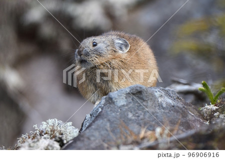 岩穴から出てきたエゾナキウサギ