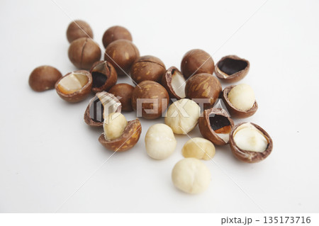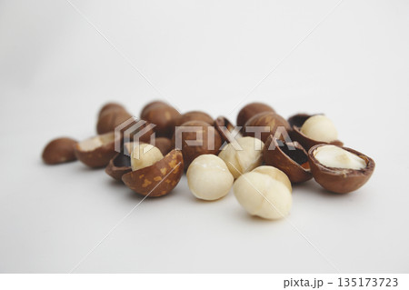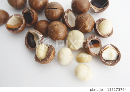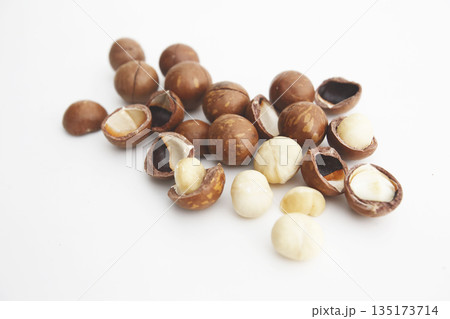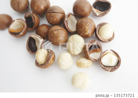 白い背景で撮った殻付きのマカダミアナッツ