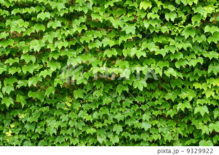 深緑色のナツヅタの葉が一面に茂る壁面緑化の背景画像