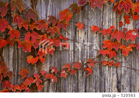 幹の樹皮に這う真っ赤に紅葉したナツヅタ