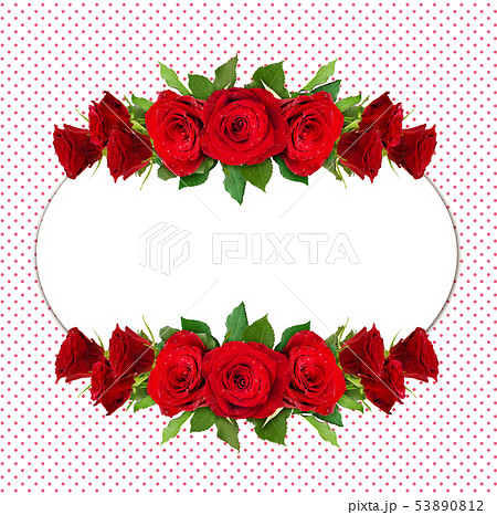 Red rose flowers round frame