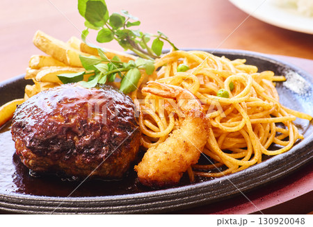 洋食プレート ハンバーグと海老フライとナポリタン