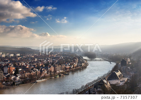 ベルギーのナミュールの街並み(城砦から撮影)とマース川