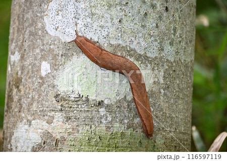 木の幹を登るヤマナメクジ