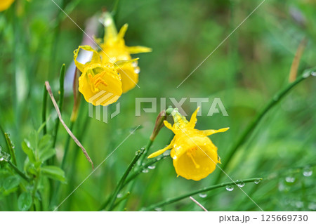 黄色いナルキッスス・ブルボコディウムの花(春、四月)