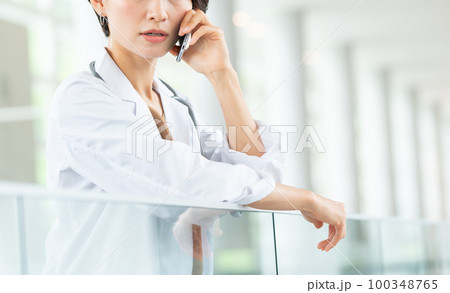 病院内でスマホを使う女性医師