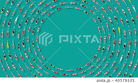 泳ぐ錦鯉と金色の円形. 和風素材.