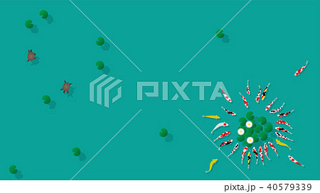 睡蓮の池で泳ぐ錦鯉のイラスト