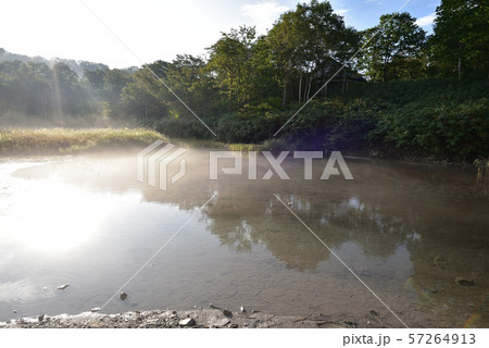 北海道蘭越町でニセコ湯元大湯沼の朝の風景を撮影