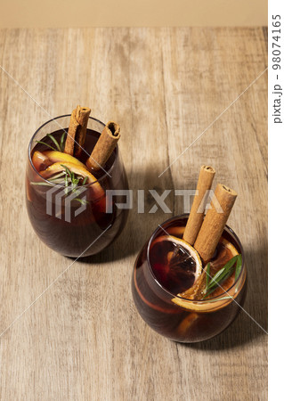 Christmas drink Vin Chaud, French mulled wine ingredients_cinnamon and dried fruits