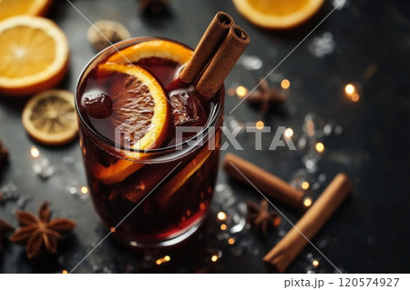 Mulled Wine with Orange Slices, Cinnamon Sticks, and Star Anise