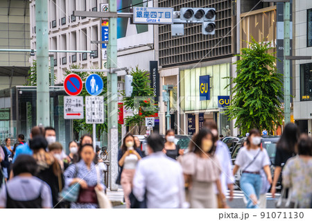 日本の東京都市景観 8週世界最多・死者数5週世界2番目。銀座駅前はコロナ禍前の人出=9月16日