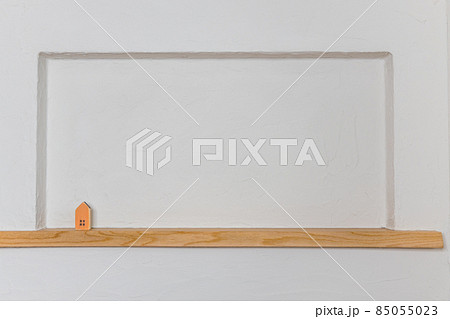 珪藻土を塗ったニッチに飾ってある木製の小さなおうち