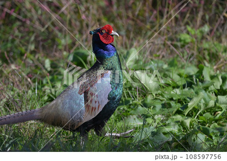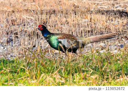 構造色が美しいキジ(キジ科)。 日本国栃木県栃木市、渡良瀬遊水地にて。 ラムサール条約登録地。 2
