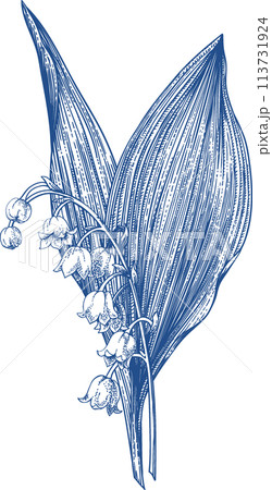 Blue. Lily of the valley. Bouquet of lilies of the valley. Garden plants. Hand drawn illustration. Vintage.