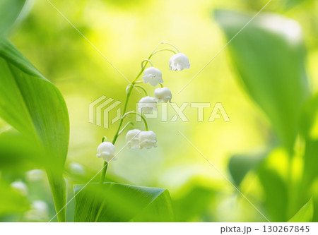 Lily of the valley flower against green forest foliage