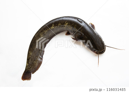 ナマズ、ニホンナマズ、マナマズ、白背景でスタジオ撮影