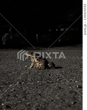 夜の道で見かけた蛙