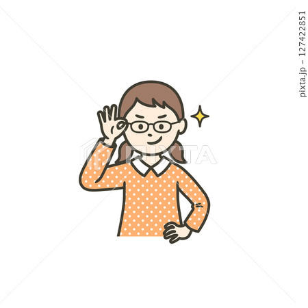 眼鏡を上げてニヤリと笑い自信を見せる女の子