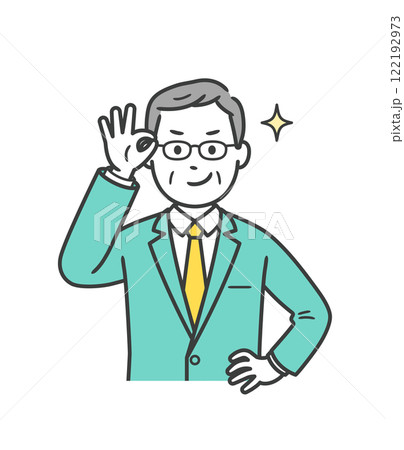 眼鏡を上げてニヤリと笑い自信を見せる高齢男性ビジネスマン