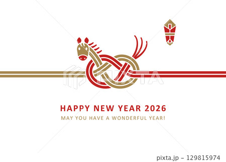 2026午年年賀状 おしゃれでシンプルな馬の水引