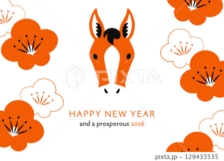 2026午年 馬と梅の花のおしゃれな年賀状 白背景