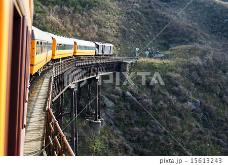 カーブする鉄橋を渡るタイエリ渓谷鉄道