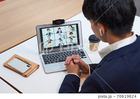 オンライン会議をする若い男性