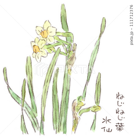 冬〜春の植物、優雅に咲くスイセン(水仙)の水彩画イラスト