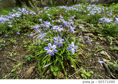 春が訪れ紫色に咲くニラバナの群生【花・植物】