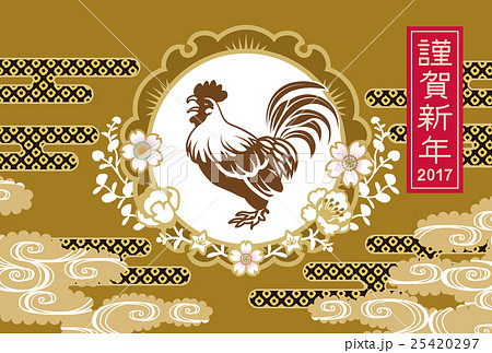 2017年 酉年年賀状 雄鶏と雲模様 金色
