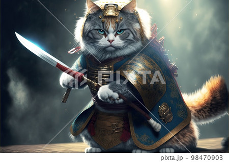cat samurai illustration generative ai