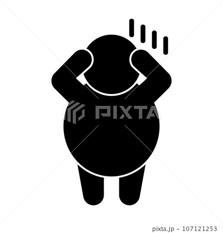 落ち込んで太っている人のシルエットアイコン。ベクター。