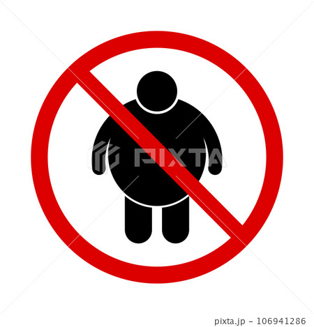 太っている人禁止アイコン。体重制限のサイン。ベクター。