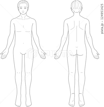 裸の女性の全身図(前面・背面セット)