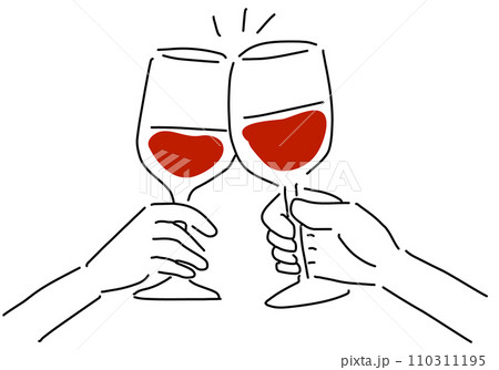 ワインで乾杯する人々の手元シンプル線画