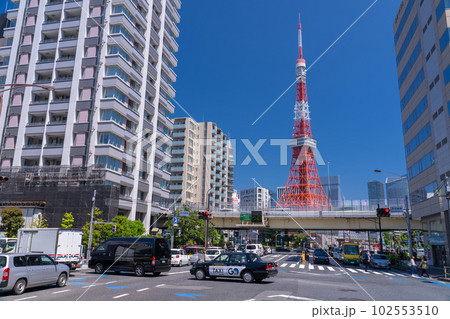 《東京都》東京タワーのある街並み・初夏の東京都市風景
