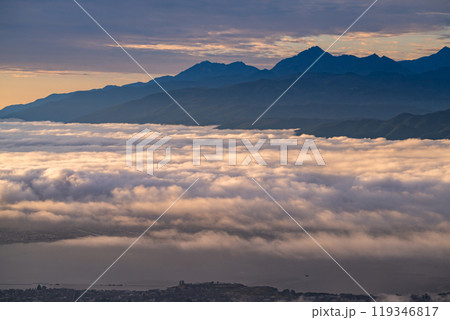 《長野県》南アルプスと大雲海の夜明け・秋の高ボッチ高原