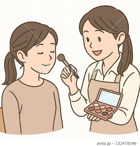就労支援 メイク・ヘア・ネイルの実習を受けるイラスト