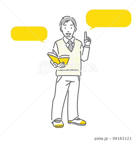 授業をする若い男性教師 シンプルでお洒落な線画イラスト