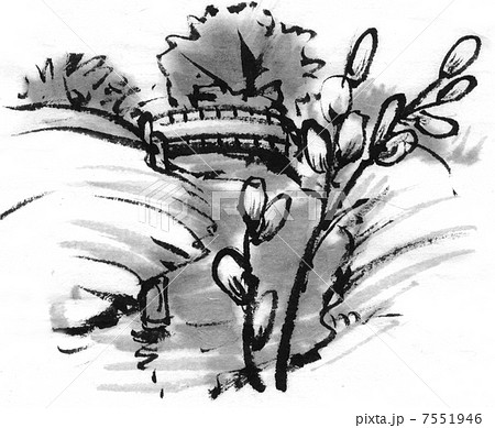 手描き 植物 ネコヤナギのイラスト 猫柳