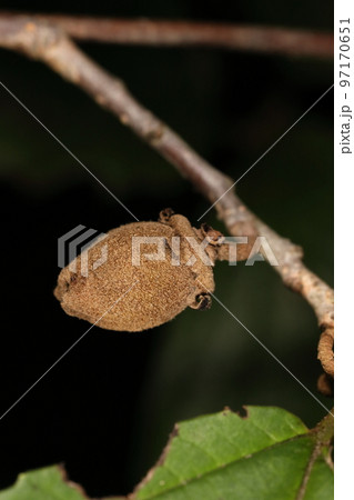 自然 植物 マンサク、六月下旬。大きくなった果実にもう虫食いの穴