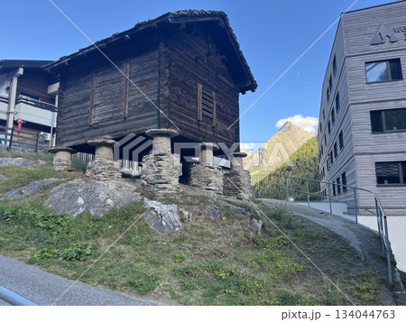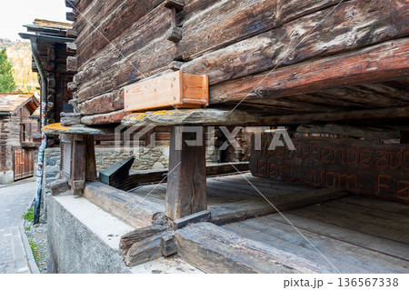 スイス、ツェルマット、ねずみ返しのある小屋