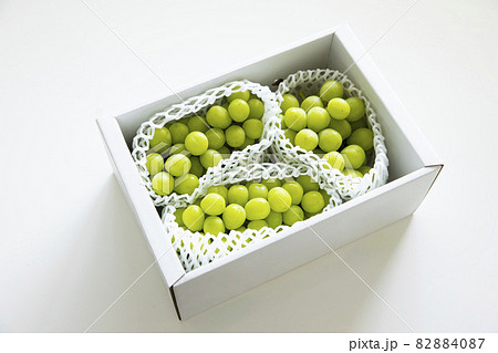 フルーツキャップに入っているシャインマスカットを黒背景で撮影