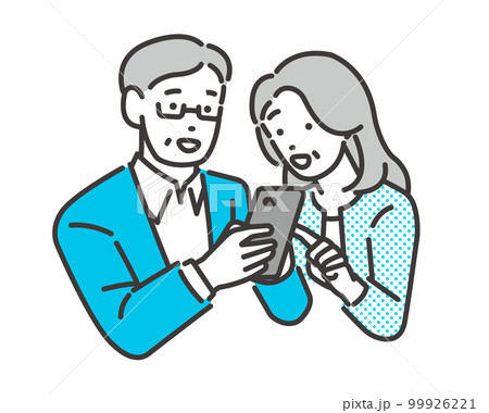 スマートフォンを操作する中高年男女のシンプルなイラスト